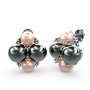 Pembe inci, siyah inci ve dumanlı kuvars 18 ayar beyaz altın küpe