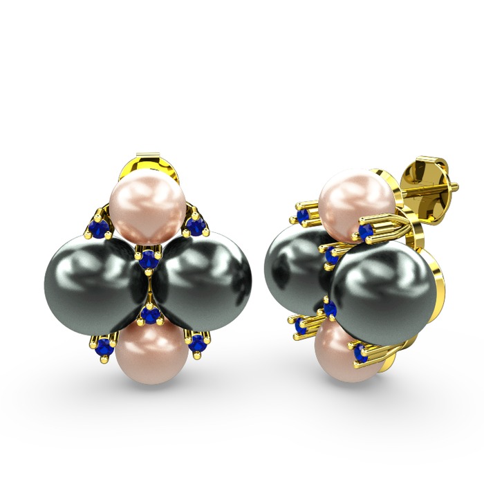 Pembe inci, siyah inci ve lab safir 8 ayar altın küpe