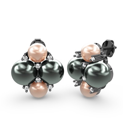Pembe inci, siyah inci ve swarovski 925 ayar siyah rodyum kaplama gümüş küpe