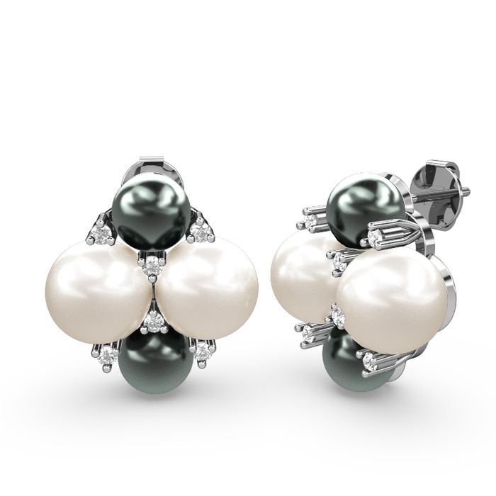 Siyah inci, inci ve pırlanta 18 ayar beyaz altın küpe (0.18 karat)