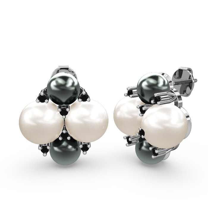Siyah inci, inci ve siyah zirkon 14 ayar beyaz altın küpe