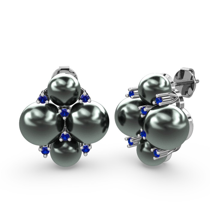 Siyah inci ve lab safir 925 ayar gümüş küpe