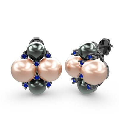 Siyah inci, pembe inci ve lab safir 925 ayar siyah rodyum kaplama gümüş küpe