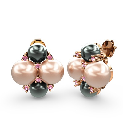 Siyah inci, pembe inci ve pembe kuvars 8 ayar rose altın küpe