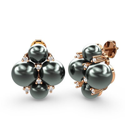 Siyah inci ve pırlanta 8 ayar rose altın küpe (0.18 karat)
