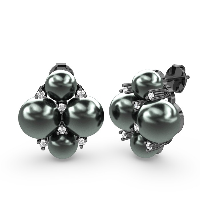 Siyah inci ve pırlanta 925 ayar siyah rodyum kaplama gümüş küpe (0.18 karat)
