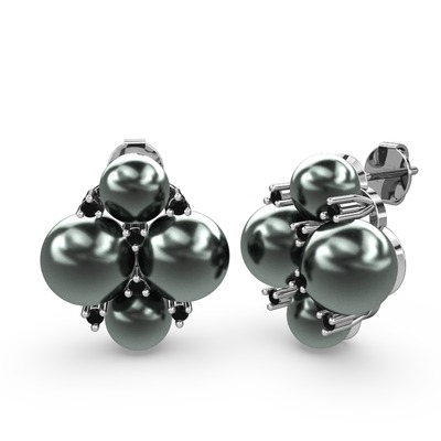 Siyah inci ve siyah zirkon 925 ayar gümüş küpe