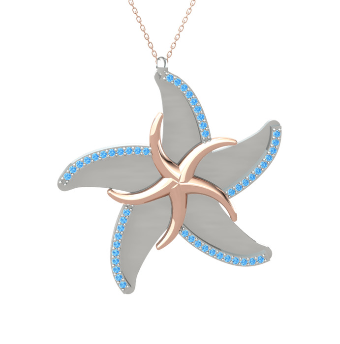 Akuamarin 18 ayar rose altın kolye (50 cm gümüş rolo zincir)
