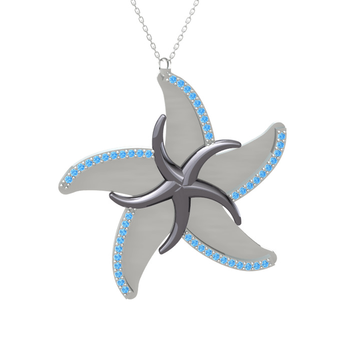 Akuamarin 925 ayar siyah rodyum kaplama gümüş kolye (50 cm beyaz altın rolo zincir)