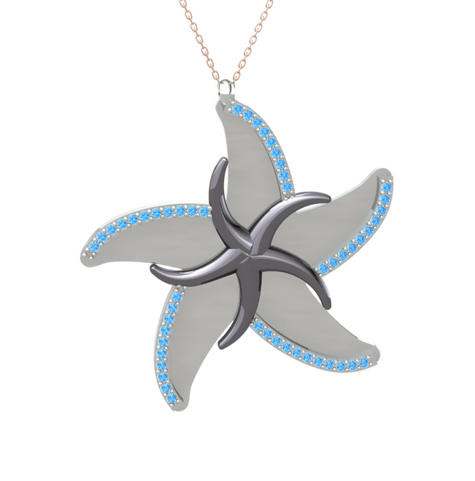 Akuamarin 925 ayar siyah rodyum kaplama gümüş kolye (50 cm gümüş rolo zincir)