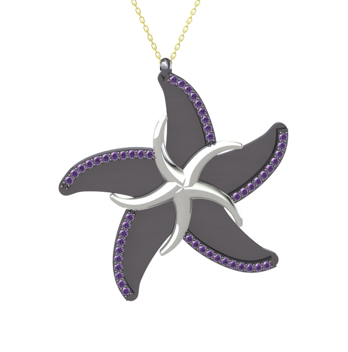 Ametist 14 ayar beyaz altın kolye (50 cm altın rolo zincir)
