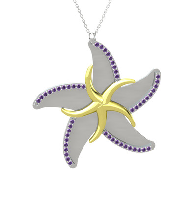 Ametist 18 ayar altın kolye (50 cm gümüş rolo zincir)