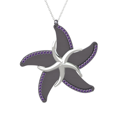 Naia Denizyıldızı Kolye - Ametist 18 ayar beyaz altın kolye (50 cm beyaz altın rolo zincir)