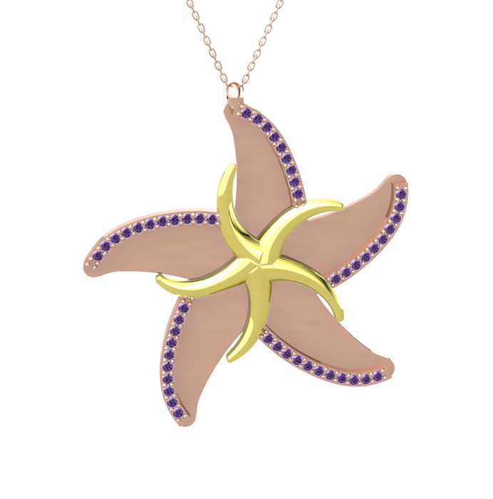 Ametist 8 ayar altın kolye (50 cm gümüş rolo zincir)