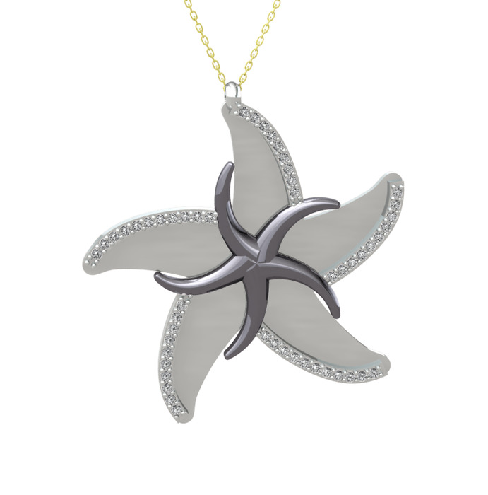Beyaz zirkon 925 ayar siyah rodyum kaplama gümüş kolye (50 cm altın rolo zincir)