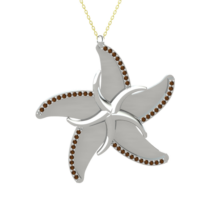 Dumanlı kuvars 18 ayar beyaz altın kolye (50 cm gümüş rolo zincir)