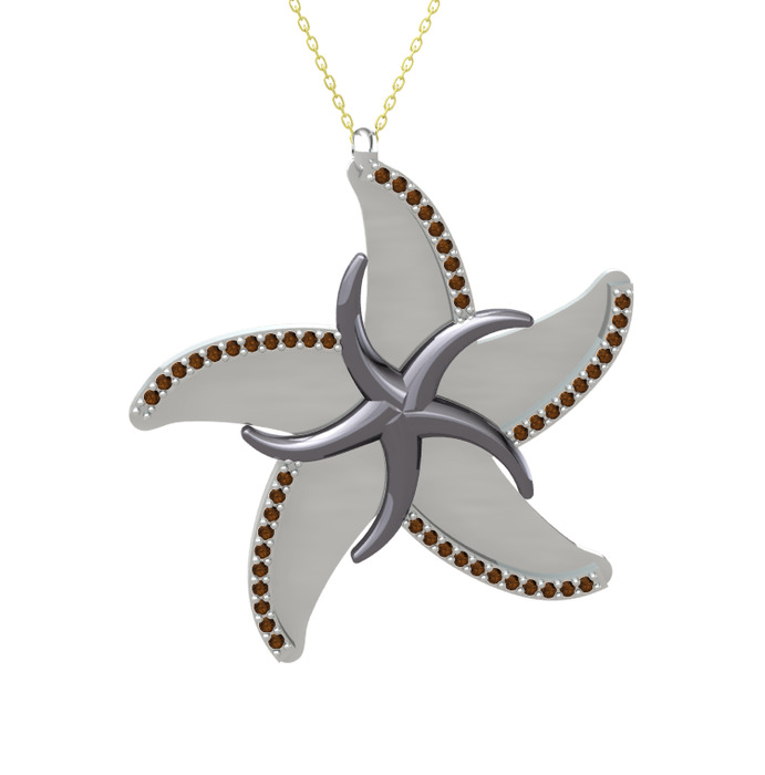 Dumanlı kuvars 925 ayar siyah rodyum kaplama gümüş kolye (50 cm altın rolo zincir)