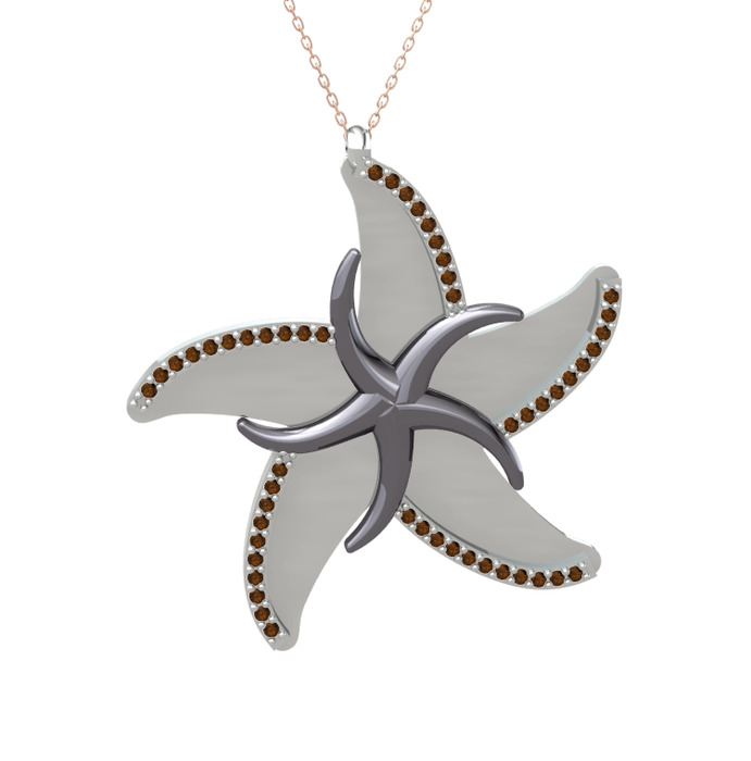 Dumanlı kuvars 925 ayar siyah rodyum kaplama gümüş kolye (50 cm gümüş rolo zincir)