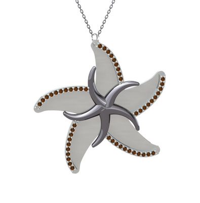 Dumanlı kuvars 925 ayar siyah rodyum kaplama gümüş kolye (50 cm gümüş rolo zincir)