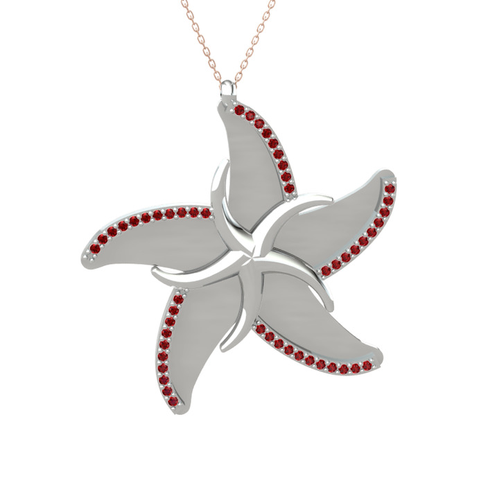 Garnet 18 ayar beyaz altın kolye (50 cm rose altın rolo zincir)