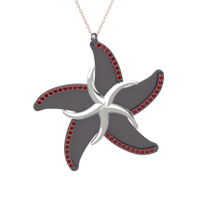 Garnet 925 ayar gümüş kolye (50 cm rose altın rolo zincir)