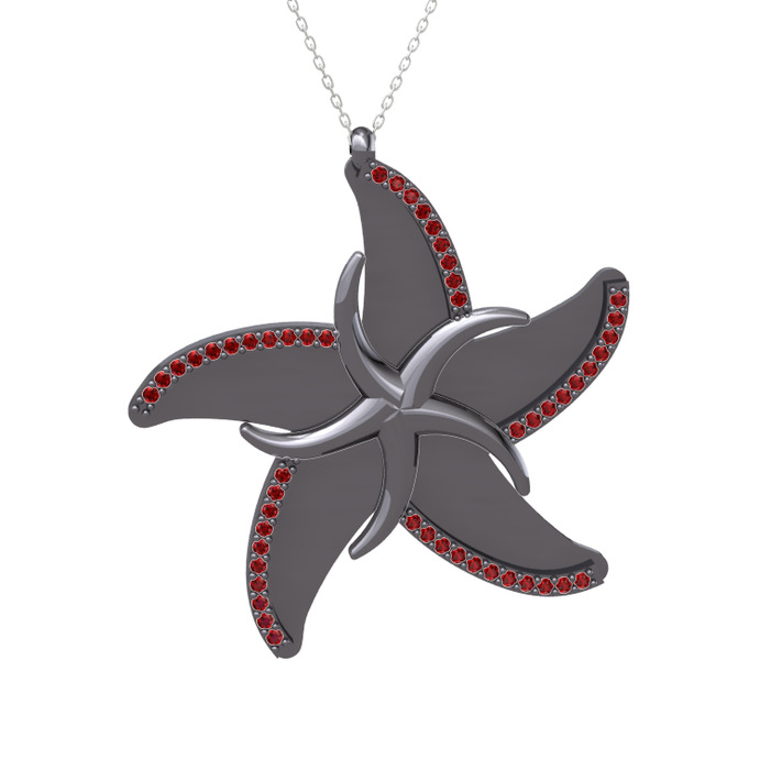 Garnet 925 ayar siyah rodyum kaplama gümüş kolye (50 cm beyaz altın rolo zincir)