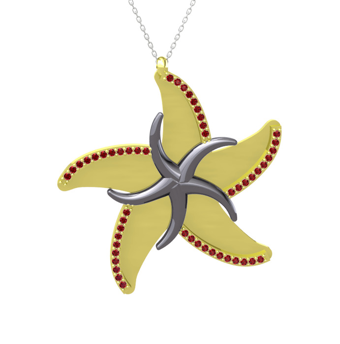 Garnet 925 ayar siyah rodyum kaplama gümüş kolye (50 cm beyaz altın rolo zincir)