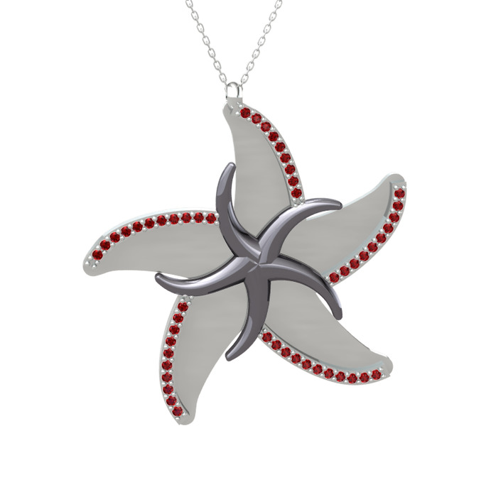 Garnet 925 ayar siyah rodyum kaplama gümüş kolye (50 cm beyaz altın rolo zincir)