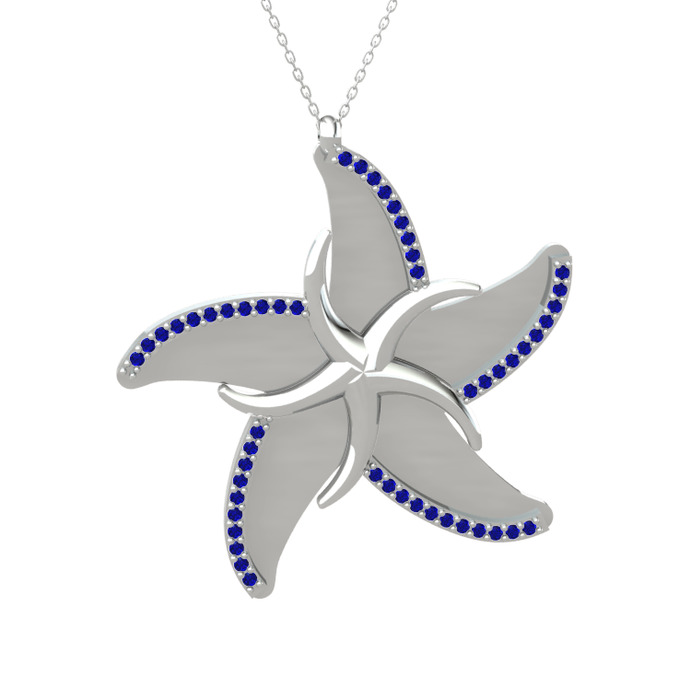 Lab safir 14 ayar beyaz altın kolye (50 cm gümüş rolo zincir)