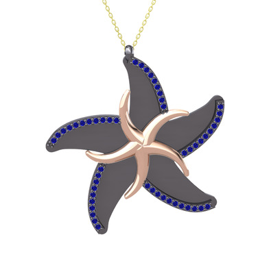Lab safir 14 ayar rose altın kolye (50 cm altın rolo zincir)
