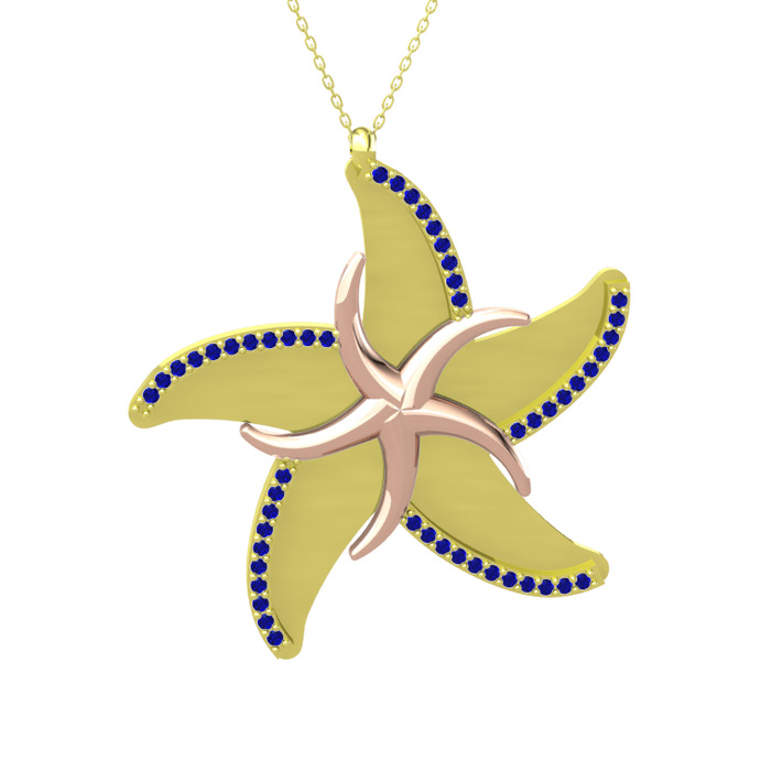 Lab safir 14 ayar rose altın kolye (50 cm gümüş rolo zincir)