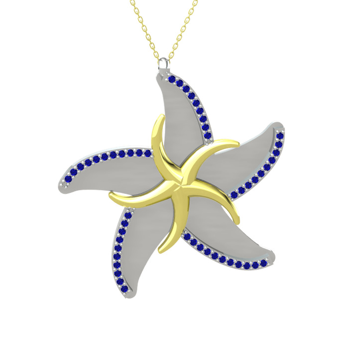 Lab safir 18 ayar altın kolye (50 cm gümüş rolo zincir)