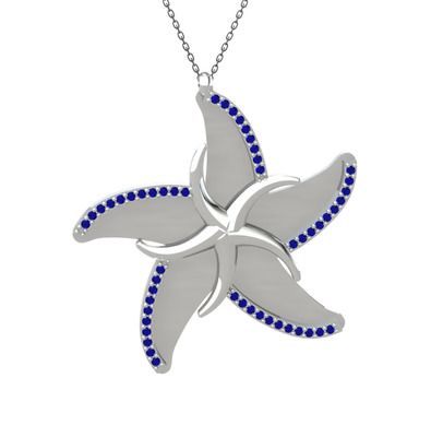 Lab safir 18 ayar beyaz altın kolye (50 cm gümüş rolo zincir)