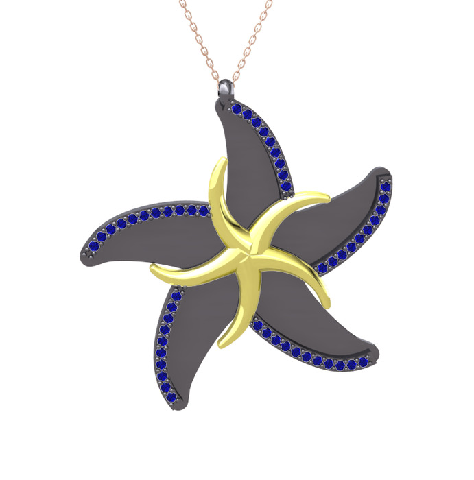 Lab safir 8 ayar altın kolye (50 cm rose altın rolo zincir)