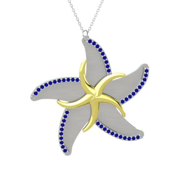Lab safir 925 ayar altın kaplama gümüş kolye (50 cm beyaz altın rolo zincir)