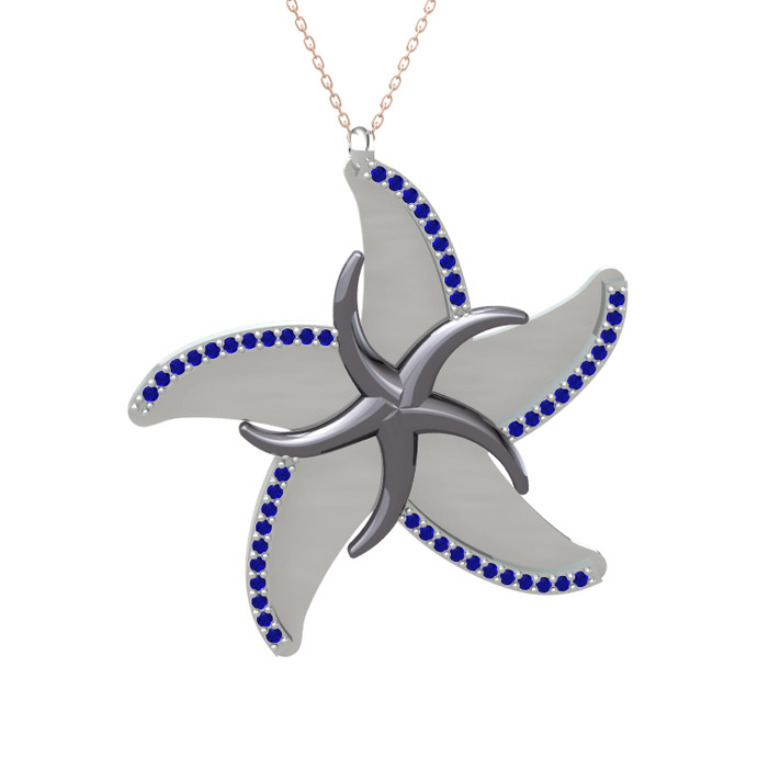 Lab safir 925 ayar siyah rodyum kaplama gümüş kolye (50 cm rose altın rolo zincir)