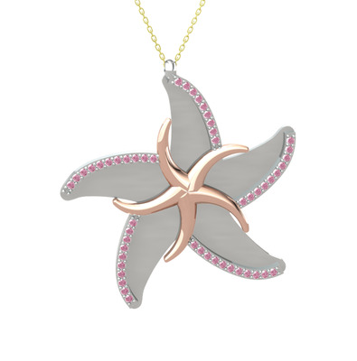 Pembe kuvars 14 ayar rose altın kolye (50 cm gümüş rolo zincir)