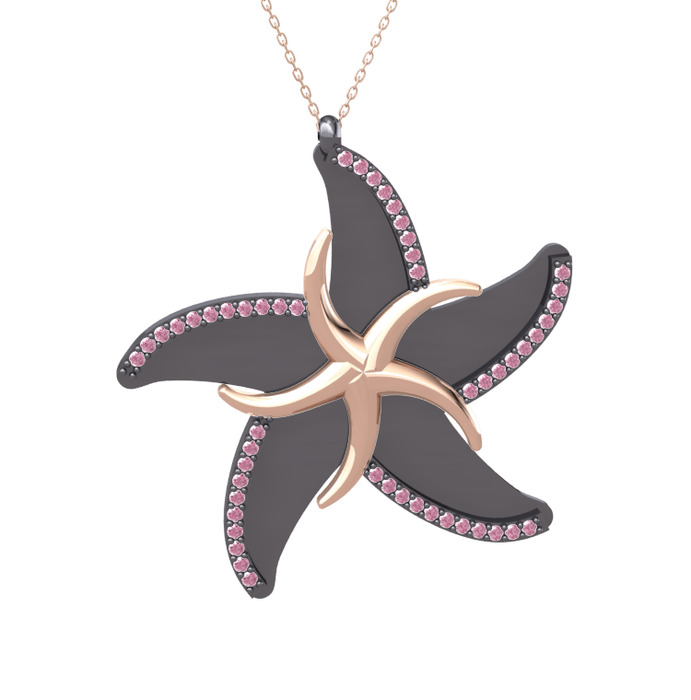 Pembe kuvars 14 ayar rose altın kolye (50 cm rose altın rolo zincir)
