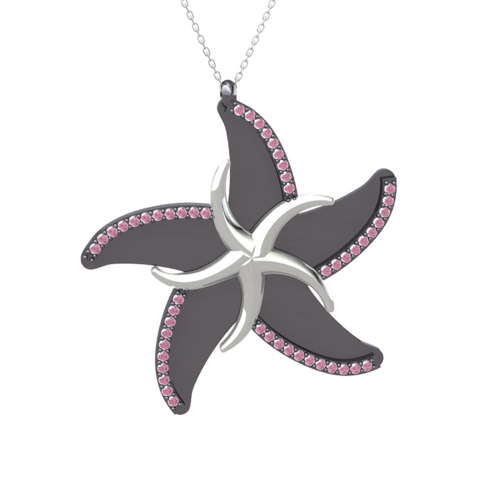Pembe kuvars 925 ayar gümüş kolye (50 cm beyaz altın rolo zincir)