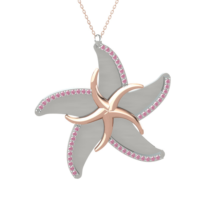 Pembe kuvars 925 ayar rose altın kaplama gümüş kolye (50 cm rose altın rolo zincir)
