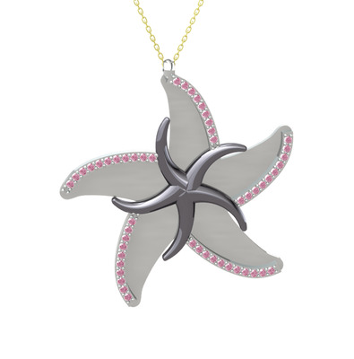 Pembe kuvars 925 ayar siyah rodyum kaplama gümüş kolye (50 cm altın rolo zincir)