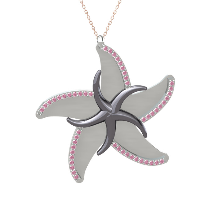 Pembe kuvars 925 ayar siyah rodyum kaplama gümüş kolye (50 cm rose altın rolo zincir)