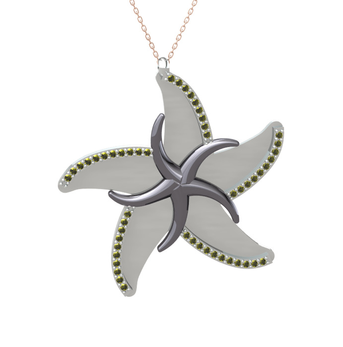 Peridot 925 ayar siyah rodyum kaplama gümüş kolye (50 cm rose altın rolo zincir)