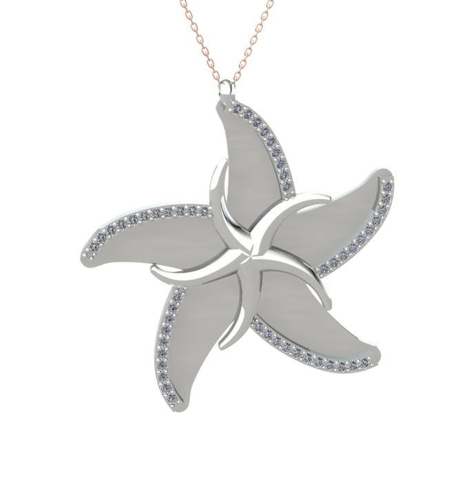 Pırlanta 925 ayar gümüş kolye (0.459 karat, 50 cm rose altın rolo zincir)