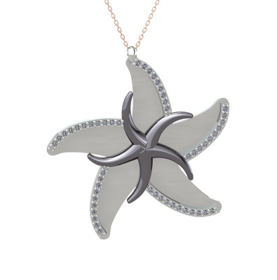 Pırlanta 925 ayar siyah rodyum kaplama gümüş kolye (0.459 karat, 50 cm rose altın rolo zincir)