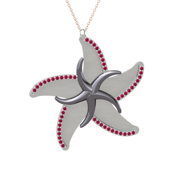 Rodolit garnet 925 ayar siyah rodyum kaplama gümüş kolye (50 cm rose altın rolo zincir)