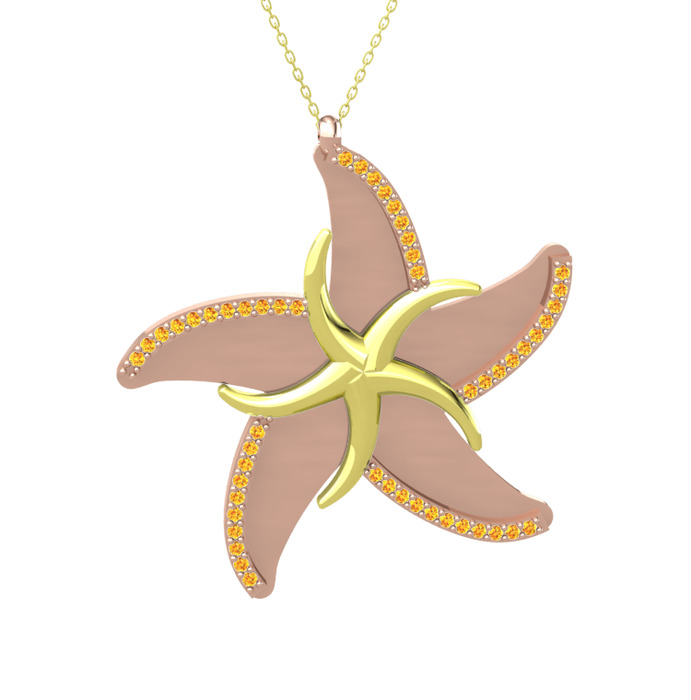 Sitrin 14 ayar altın kolye (50 cm altın rolo zincir)