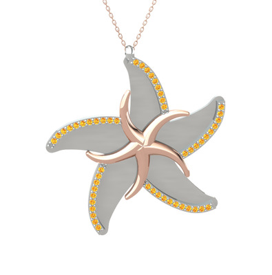 Sitrin 18 ayar rose altın kolye (50 cm rose altın rolo zincir)