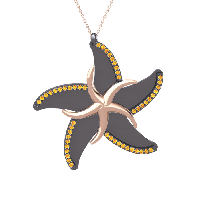 Sitrin 8 ayar rose altın kolye (50 cm rose altın rolo zincir)