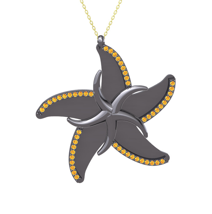 Sitrin 925 ayar siyah rodyum kaplama gümüş kolye (50 cm altın rolo zincir)
